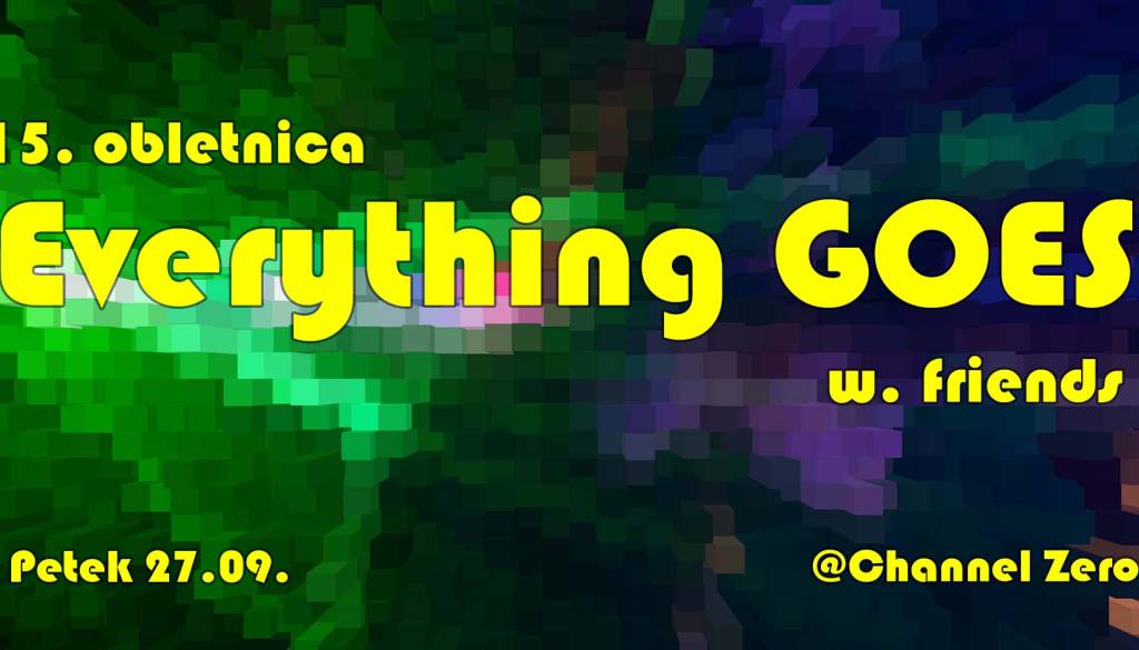 KUD Channel Zero15 let! Noro in tole bo zares noro! Ob tej okrogli obletnici se DJ ekipa EVERYTHING GOES združuje, vabi v goste odmevna DJ imena iz scene in seveda tudi vas, da se nam pridružite na še eni nepozabni ediciji z muziko za vse plesne okuse. Petek, 27. september, klub Channel Zero - ne pozabi!