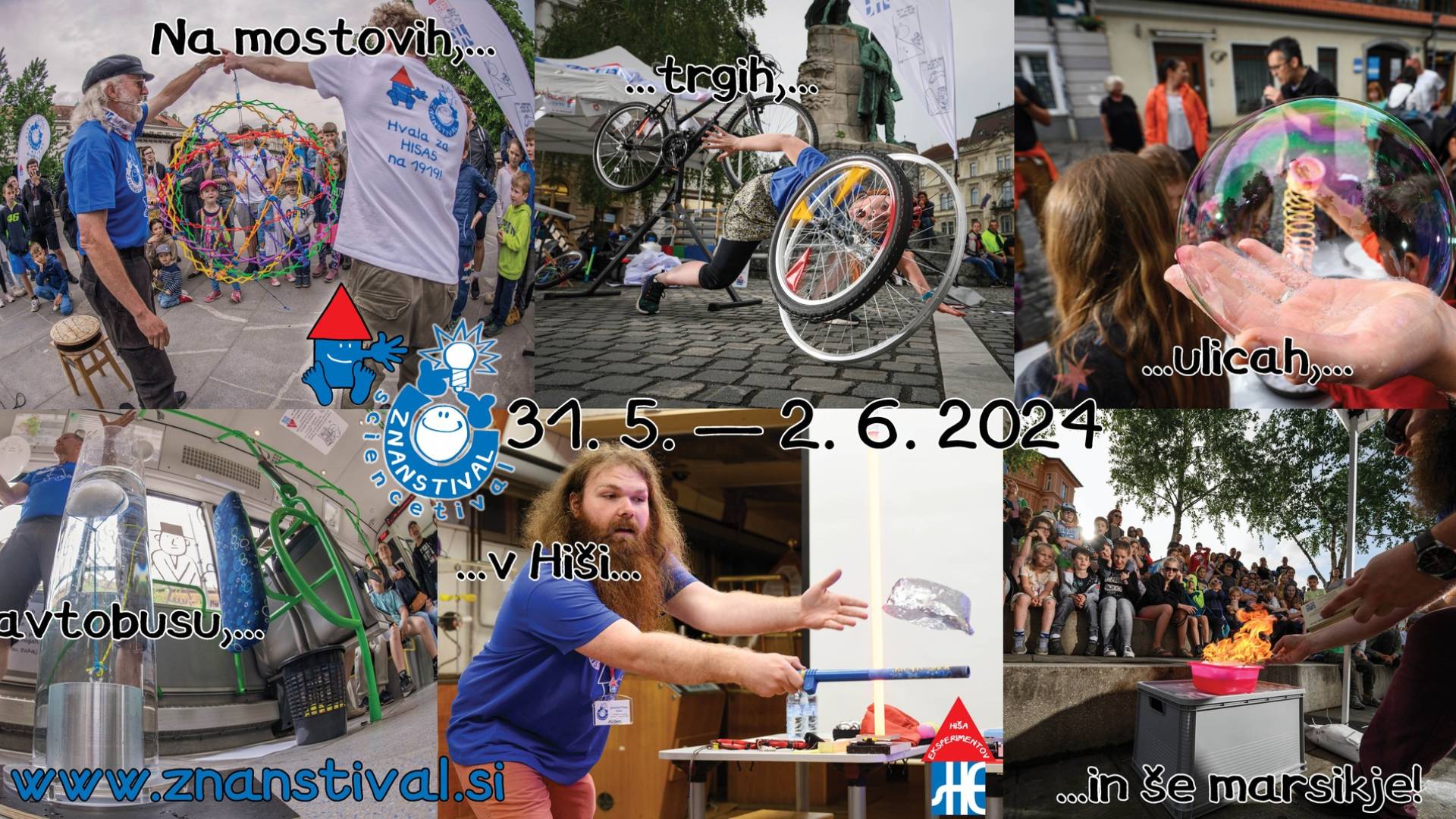 LjubljanaFestival znanstvenih dogodivščin - Znanstival, se bo odvijal v središču Ljubljane - na mostovih, trgih, ulicah, avtobusu, v Hiši eksperimentov in še kje.