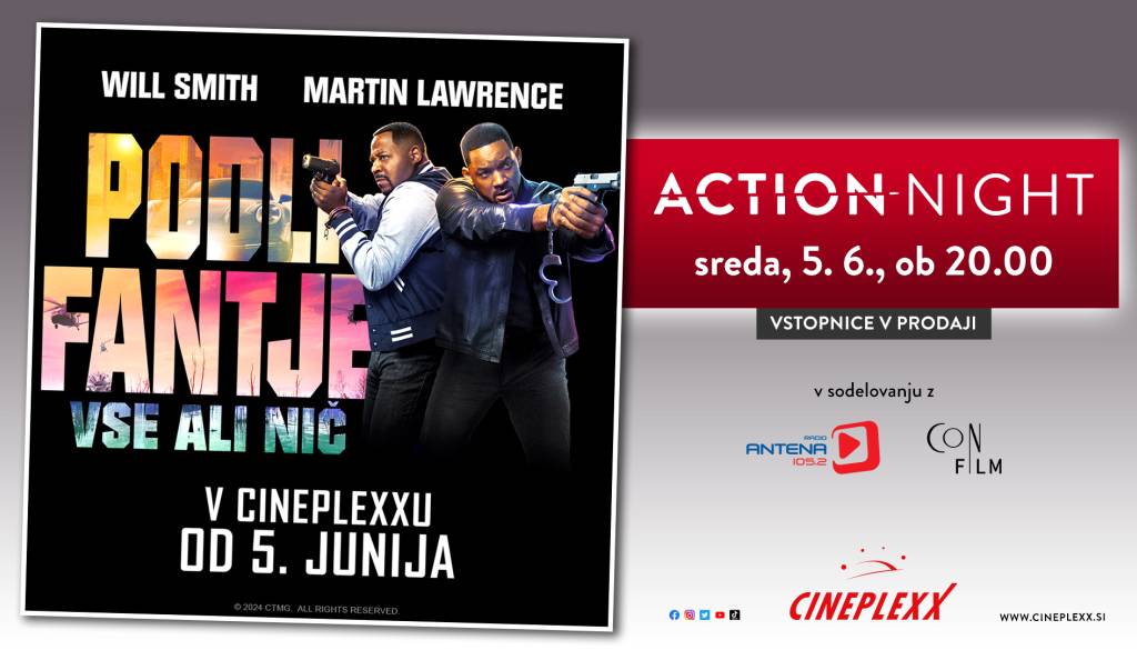 Cineplexx Ljubljana RudnikPridruži se nam na Action Nightu s filmom PODLI FANTJE: VSE ALI NIČ, ki bo v sredo, 5. junija 2024 ob 20:00 v Cineplexxu Ljubljana Rudnik!