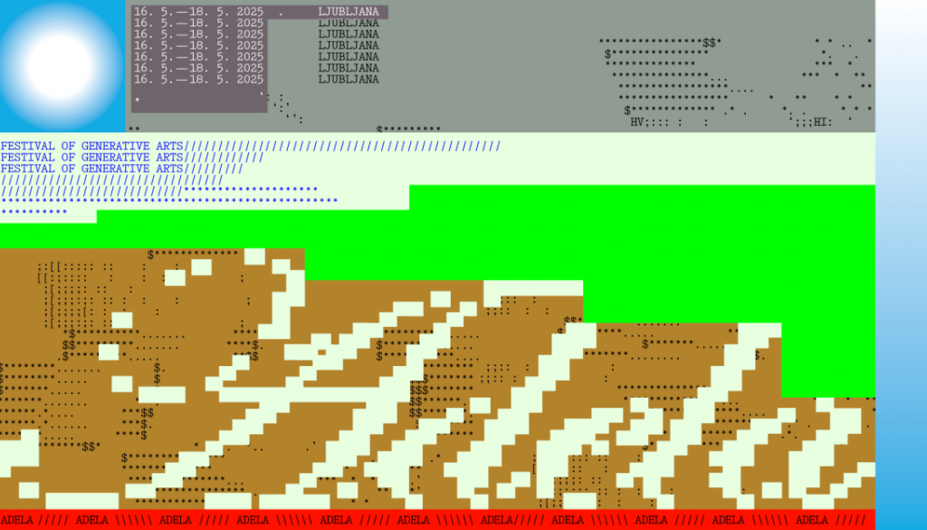 Tretja izdaja Adele, mednarodnega festivala generativnih umetnosti, se osredotoča na trajnostno računalniško ustvarjalnost, ki lahko kot generativna sila podpre snovanje alternativnih modelov mišljenja in interakcije med okoljem, tehnologijo in ljudmi.