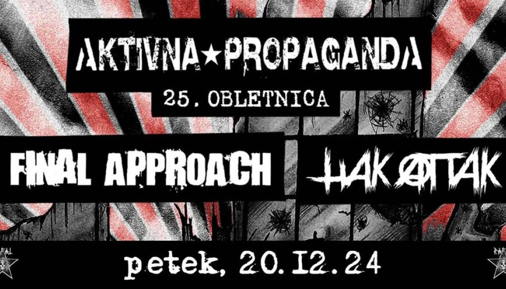 Pred petimi leti je Aktivna propaganda nazadnje igrala na Gromkinem odru. In po petletni pavzi, ko smo se že zdavnaj sprijaznili z mislijo, da smo videli zadnji AP koncert, smo se ponovno naučili: `Nikoli ne reci nikoli!`. Aktivna propaganda je bend naše mladosti in odraščanja. Je eden najbolj prepoznavnih domačih bendov, ki preigrava street school hc in ki nas je za vedno osvojil z anarhističnimi in antifašističnimi DIY načeli ter kritikami trenutne socialno-politične situacije. Življenje teče, prinaša svoje bitke, a prva ljubezen ostaja. Tako da ponovno, mogoče tokrat pa res zadnjič, nazdravljamo na fantastičnih AP25!