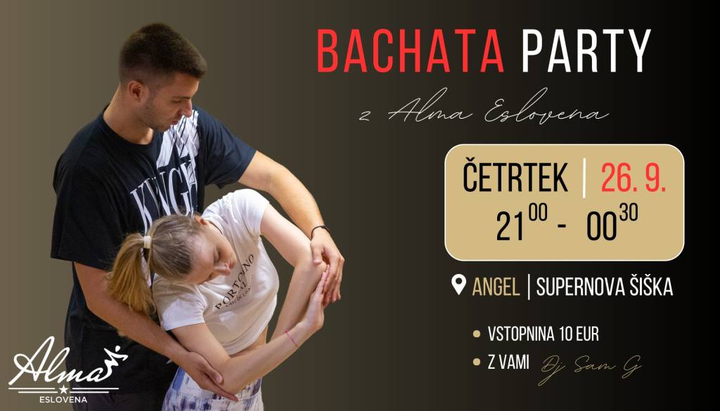 Vabljeni na naÅ”e bachata zabave! Od nove sezone dalje bomo zaradi velikega zanimanja plesali veÄkrat na mesec - veÄ o tem pa kmalu š
