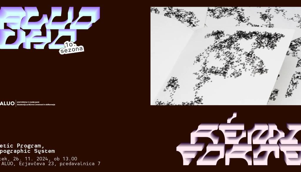 Predavatelj nam bo na podlagi bogate zbirke dokumentov predstavil razvoj, ki se je v zadnjih sedmih letih zgodil pri njegovem raziskovalno-ustvarjalnem delu. Razkril bo svoj ustvarjalni proces na stičišču poezije, tipografije in programiranja, s poudarkom na interakciji med pisanjem in oblikovanjem, ki jo orkestrirajo programi in sistemi.