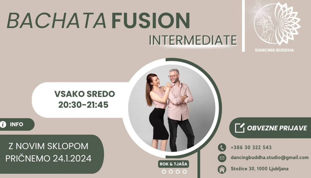 V sredo 24.1. vas vabimo, da se nam pridružite na novem sklopu Bachate Fusion z Rokom in Tjašo stopnja INTERMEDIATE.