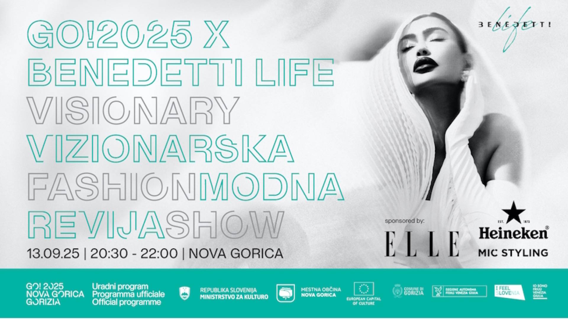 Pred arkadami Občinske palače Nova GoricaVečkrat nagrajena modna oblikovalka Matea Benedetti bo v okviru projekta EPK predstavila edinstveno modno revijo. Na osupljivi modni pisti pred Mestno Občino Nova Gorica bodo predstavljeni kosi, ki združujejo tehnološke inovacije, ekološko ozaveščenost in brezčasen glamur.