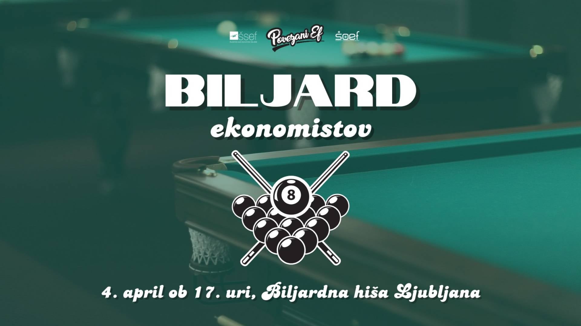 Ste pripravljeni na partijo biljarda? Deževni pomladni popoldnevi so kot nalašč za druženje, sprostitev in manjši odklop od študijskih obveznosti. Povezani EF zato za vas premierno organiziramo 𝗕𝗜𝗟𝗝𝗔𝗥𝗗 𝗘𝗞𝗢𝗡𝗢𝗠𝗜𝗦𝗧𝗢𝗩, ki bo potekal v četrtek, 4. aprila, od 17. do 19. ure, v Biljardni hiši Ljubljana 🎱