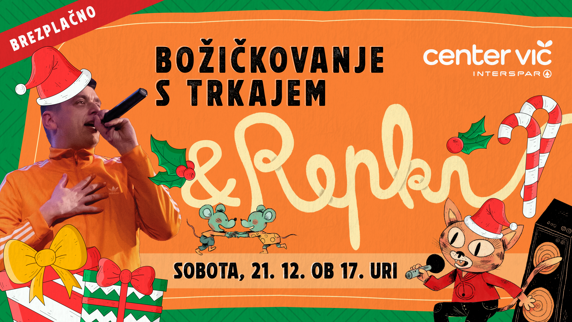 Center Vič - nov prireditveni prostorDecember v Centru Vič je tudi glasbeno obarvan! Po odlični Romani Krajnčan, bo 21. 12. ob 17.00, otroke in starše z Božičnimi repki in njihovimi prazničnimi ritmi razveselil še priljubljeni Trkaj. Otroška poezija odličnih slovenskih pesnikov v kombinaciji s sodobnimi igrivimi in otroškimi Trkajevimi repi. Gre za zabavne in radožive otroške pesmi, ki bodo poskrbele za pravo zabavo in pravljično vzdušje. Za vrhunec doživetja pa bo, kot se za december spodobi, otroke pozdravil tudi Božiček, ki bo vsakemu izročil še simbolično darilo.