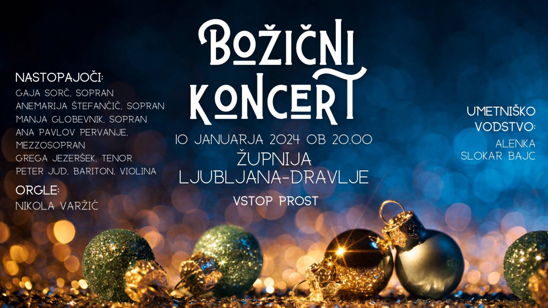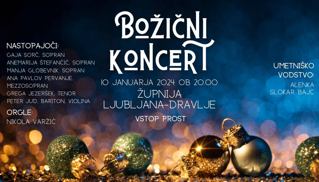 Župnija Ljubljana DravljeLapo vabljeni na Božični koncert v Župnijo Ljubljana-Dravlje, v sredo, 10. januarja 2024, ob 20.00h.