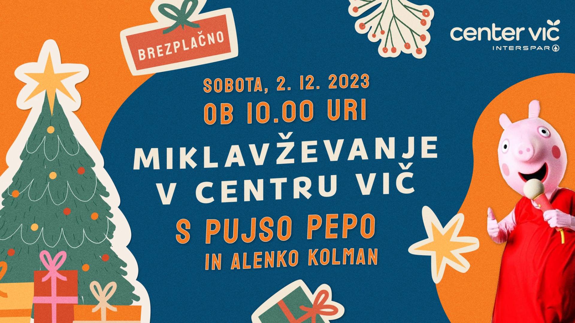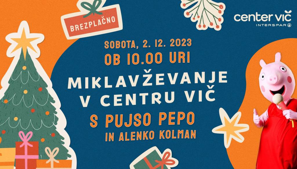 V soboto, 2. decembra ob 10.00, se v Centru Vič obeta nepozabni uvod v praznični december, saj bo otroke razveselila vsem dobro poznana Alenka Kolman in rožnata junakinja, Pujsa Pepa. 😍