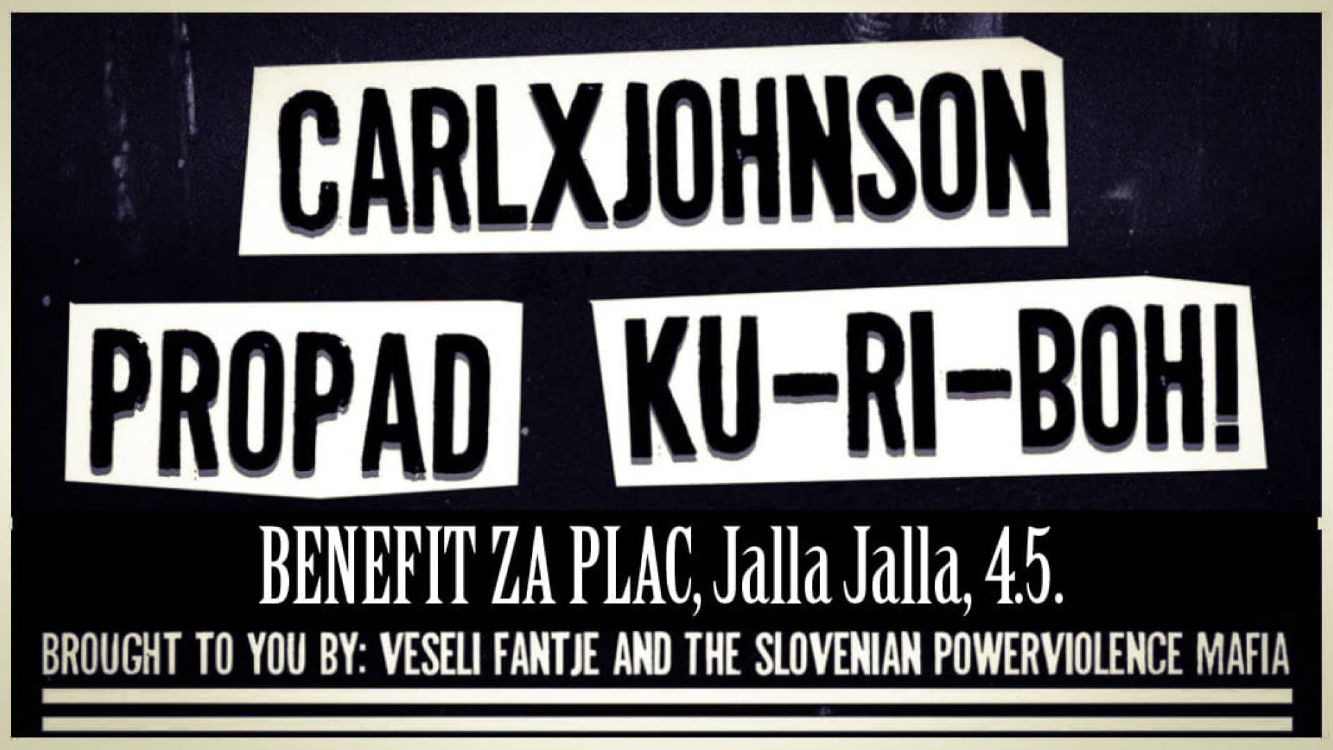 Torej, naši bolj ali manj veseli fantje se vračajo iz vzhodno (in centralno) evropske turneje in - ker gotovo še ne bodo imeli dovolj - kanijo pokazati solidarnost z najnovejše zasedenim prostorom v Ljubljani. V ta, dober, namen bodo 4.5. pičili močno nasilni CarlxJohnson, Propad ter Ku-Ri-Boh (in morda še kdo) katerih podrobnejšega opisa niti ne potrebujemo.
