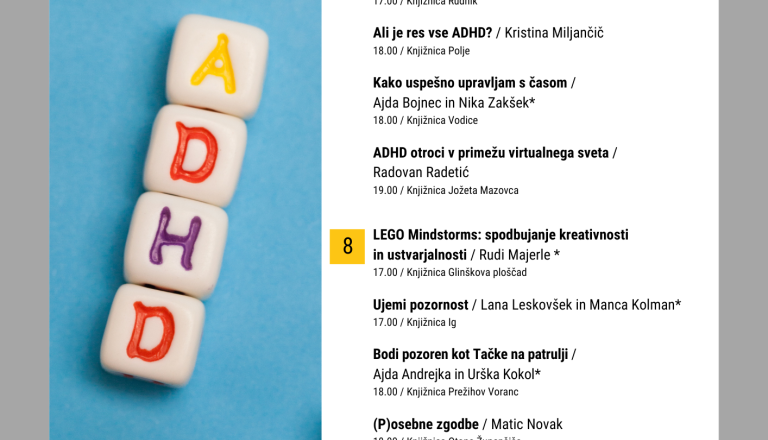Mestna knjižnica Ljubljana - Knjižnica RogSpoznali bomo različne načine za samostojno načrtovanje časa, da ga ostane čim več za hobije ter ostale prijetne obveznosti. Naučili se bodo oblikovanja dnevnih, tedenskih in mesečnih urnikov ter prejeli mapo z različnimi predlogi za obvladovanje časa, ki ga bodo z lahko prenesli v vsakdan. Primerno za mlade med 10. in 15. letom.