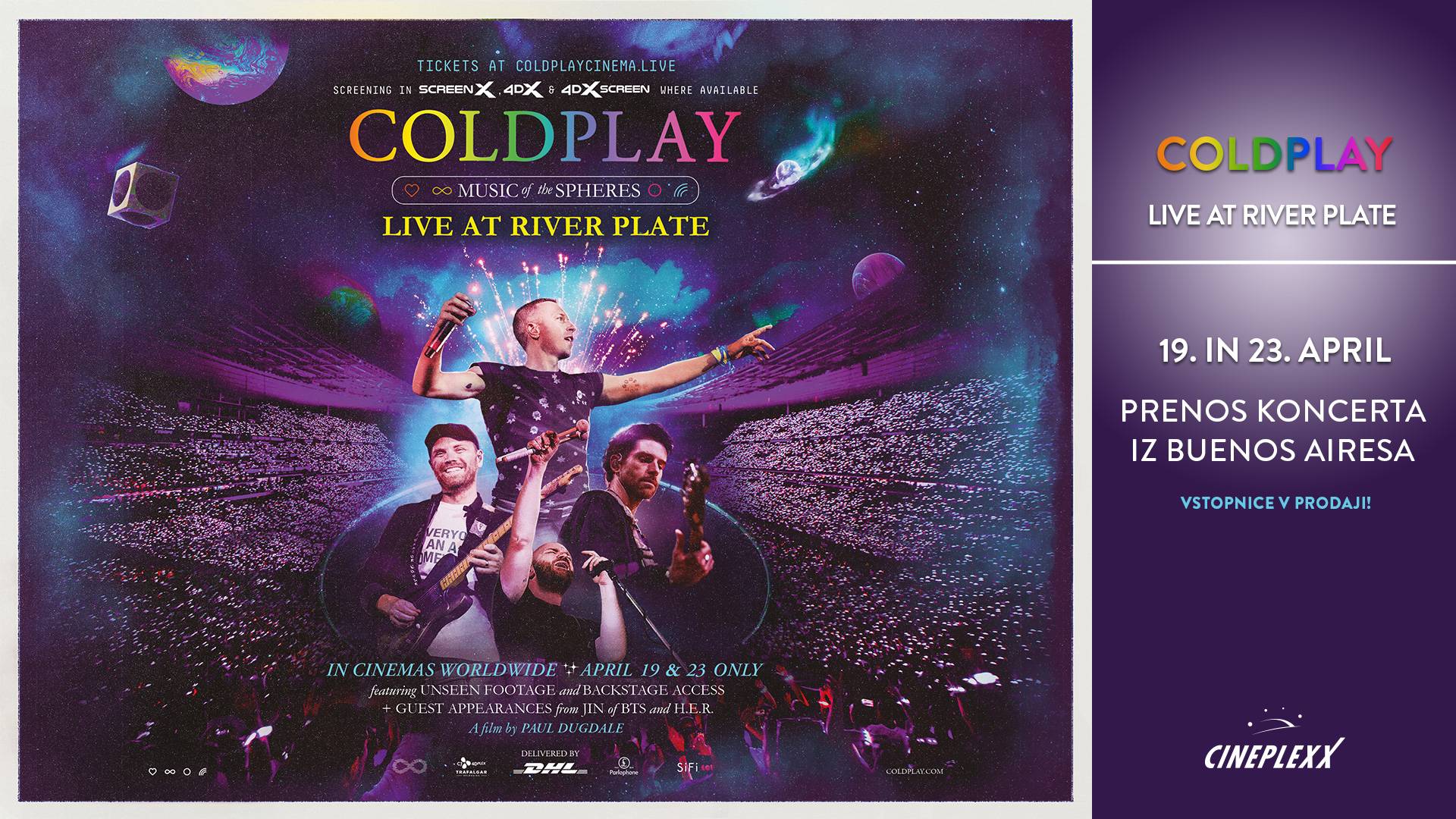 Cineplexx Ljubljana RudnikV sredo, 19. aprila, in nedeljo, 23. aprila, ne zamudi posnetka koncerta skupine COLDPLAY iz stadiona River Plate! V Cineplexx kinih Ljubljana Rudnik, Maribor, Celje in Koper. Vstopnice so že v prodaji!