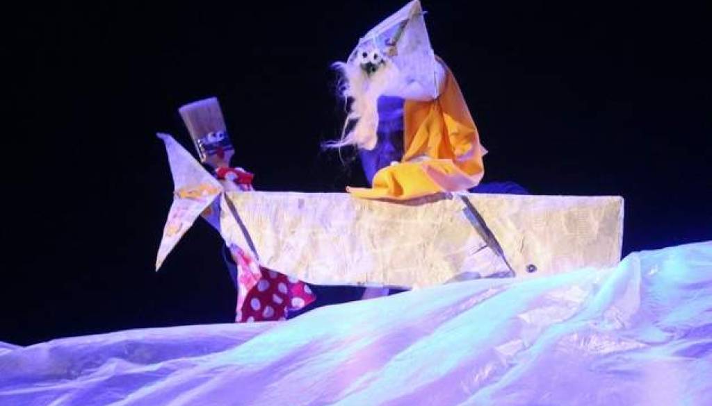 Tokratna predstava Deklica in kapitan pa pripoveduje zgodbo o dveh slikopleskarjih, ki imata nalogo, da prebelita gledališče. A med njunim delom, ki se sooča z burlesko v stilu risanke A je to, gredo stvari v čisto drugo smer. Zaščitna folija hitro postane morje, različna orodja se spremenijo v figure in dolgočasna »malarija« oživi … Prisrčno dogodivščino med deklico Čopko in kapitanom Valčkom, dopolnita še ptič in kit. Slednja sta origami lutki, ptič je nastal iz papirnatega letala, izvemo. Tudi ladja je origami, medtem ko kapitana »igra« pleskarski valjček, Čopka pa je iz čopiča.