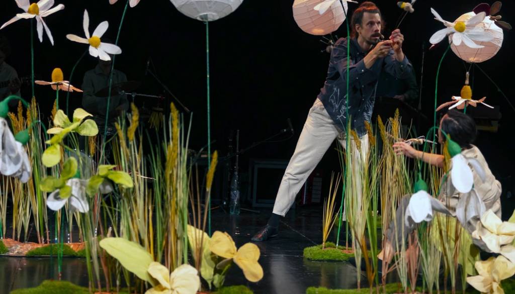 SiTi Teater BTCPesniško raziskovanje življenja na travniku in ob travniških mlakah – od jutra do večera – z živo glasbo in lutkami. V predstavi lahko prisluhnemo prvič uglasbenim pesmim iz znanih zbirk Anje Štefan. Druščina godcev otrokom predstavi življenje na travniku: bogat nabor cvetlic in žuželk ter majhnih živali, ki bivajo v luknjah, med travo in ločjem ter ob travniških mlakah. Z igro ugank otroci sodelujejo pri spoznavanju narave, ki od jutra do večera migota in žvrgoli. Rastlinje se sramežljivo prebuja v jutranji rosi, čez dan bogato razpre svoje cvetove in na malico vabi roje žuželk, ki jih spremljajo marljive miške, pogumni polži in lene žabice.