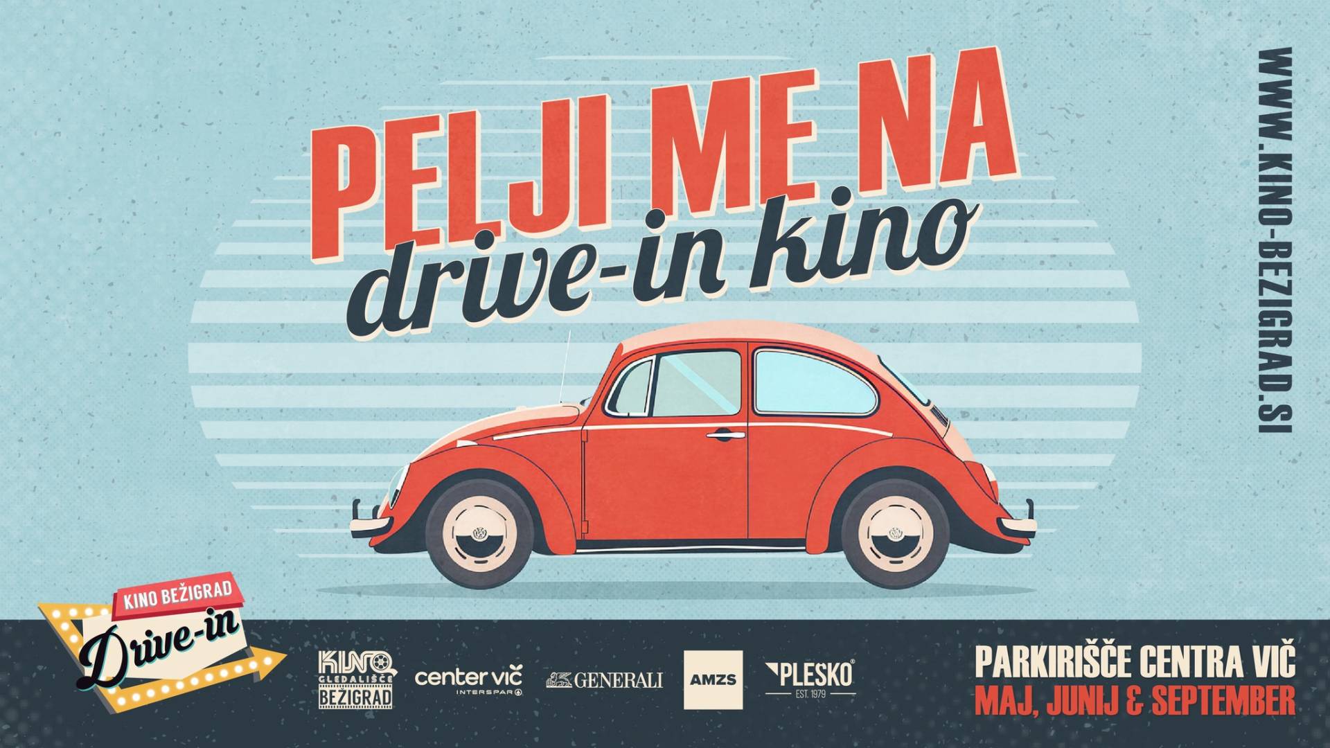 Projekt DRIVE-IN KINA BEŽIGRAD je ponovno zaživel ob podpori partnerja projekta Centra Vič in generalnih sponzorjev Zavarovalnice Generali, Avtohiše Pleško Group in AMZS-ja. ❤️