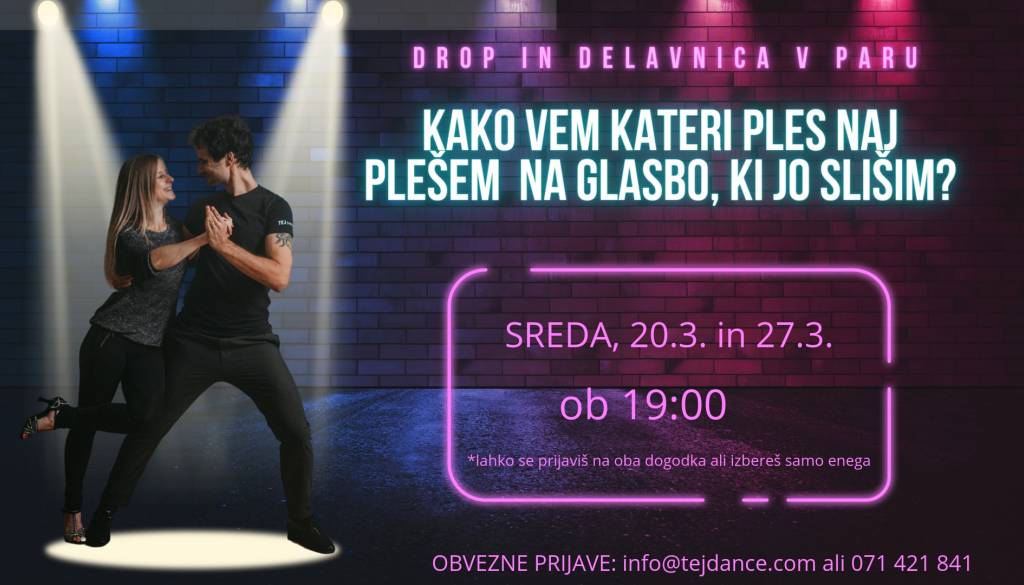V marcu vabljeni na dva posebna DROP IN tečaja v Plesni šoli TEJ Dance, kjer boste osvojili skrivnost izbire pravega plesa za vsako glasbo!
