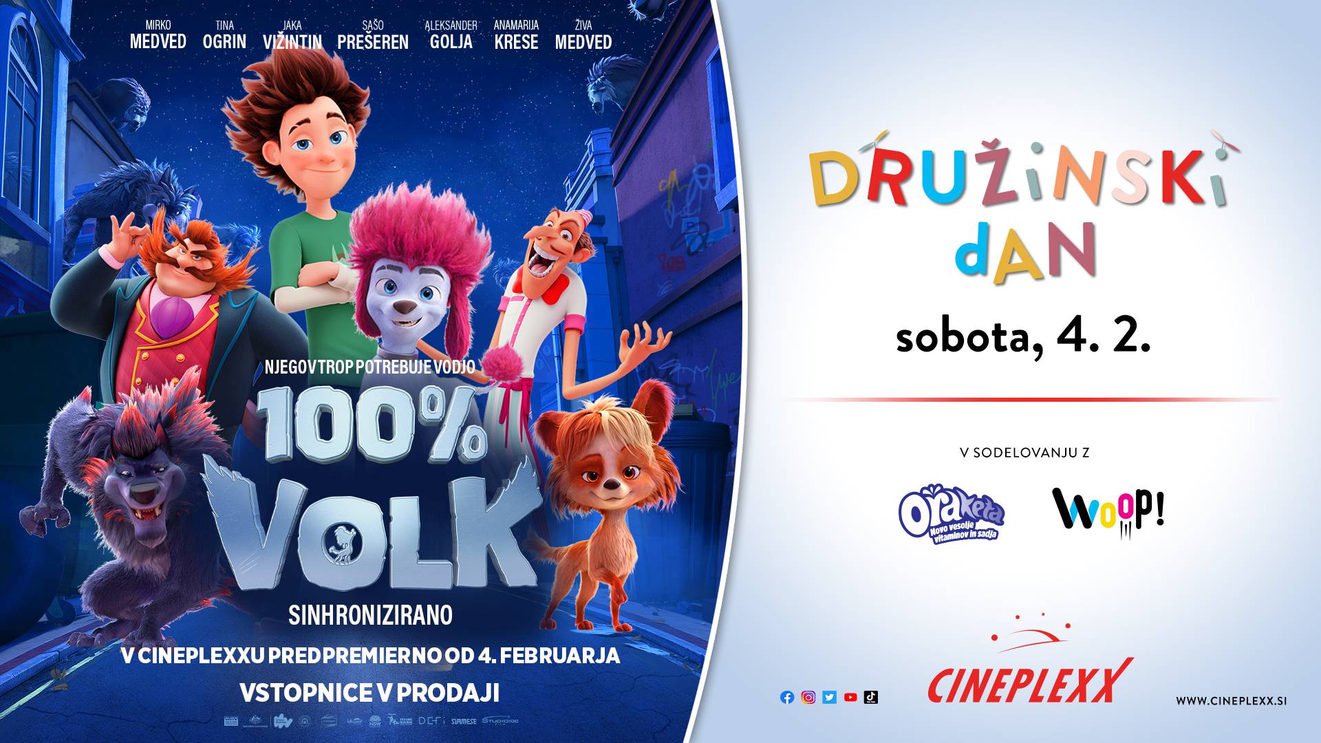 Cineplexx Ljubljana RudnikDRUŽINSKI DAN 100% VOLK - bo v soboto, 4. februarja V Cineplexxu Ljubljana.
