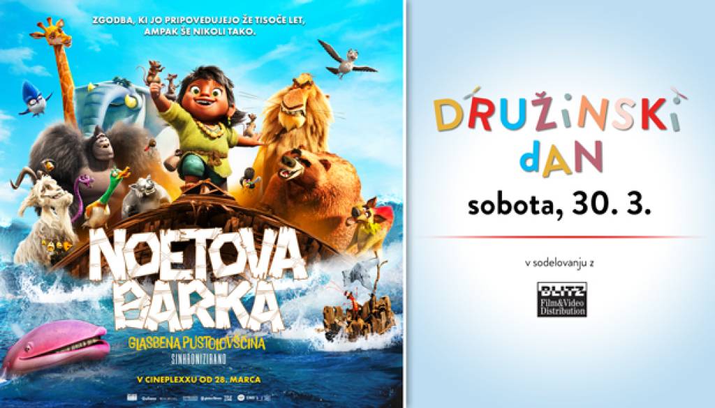 Cineplexx Ljubljana RudnikPridružite se nam na DRUŽINSKEM DNEVU s filmom NOETOVA BARKA: GLASBENA PUSTOLOVŠČINA, v soboto, 30. marca 2024, v Cineplexxu Ljubljana Rudnik!