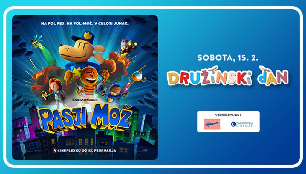 Cineplexx Ljubljana RudnikPridružite se nam na DRUŽINSKEM DNEVU s filmom PASJI MOŽ v soboto, 15. februarja 2025 v Cineplexxu Ljubljana Rudnik!