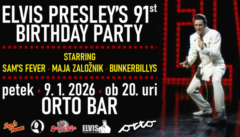 9.januarja 2026 se bomo zbrali v legendarnem Orto Baru, kjer bomo skupaj praznovali rojstni dan enega največjih umetnikov vseh časov — kralja rock’n’rolla, Elvisa Presleya.