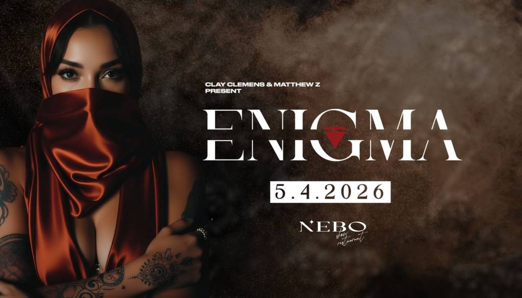 Pridružite se nam 5.4 v čarobnem NEBO Show Restaurantu, kjer bo skrivnost zaživela skozi glasbo in unikatno atmosfero. ENIGMA ni le dogodek, je doživetje, ki vas popelje v globine neznanega. Ste pripravljeni razvozlati skrivnost?