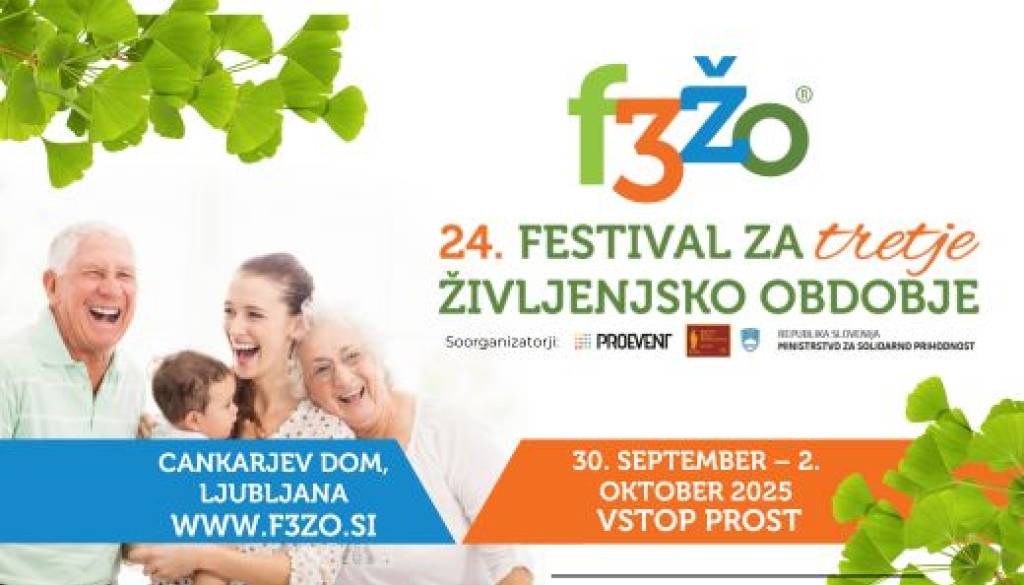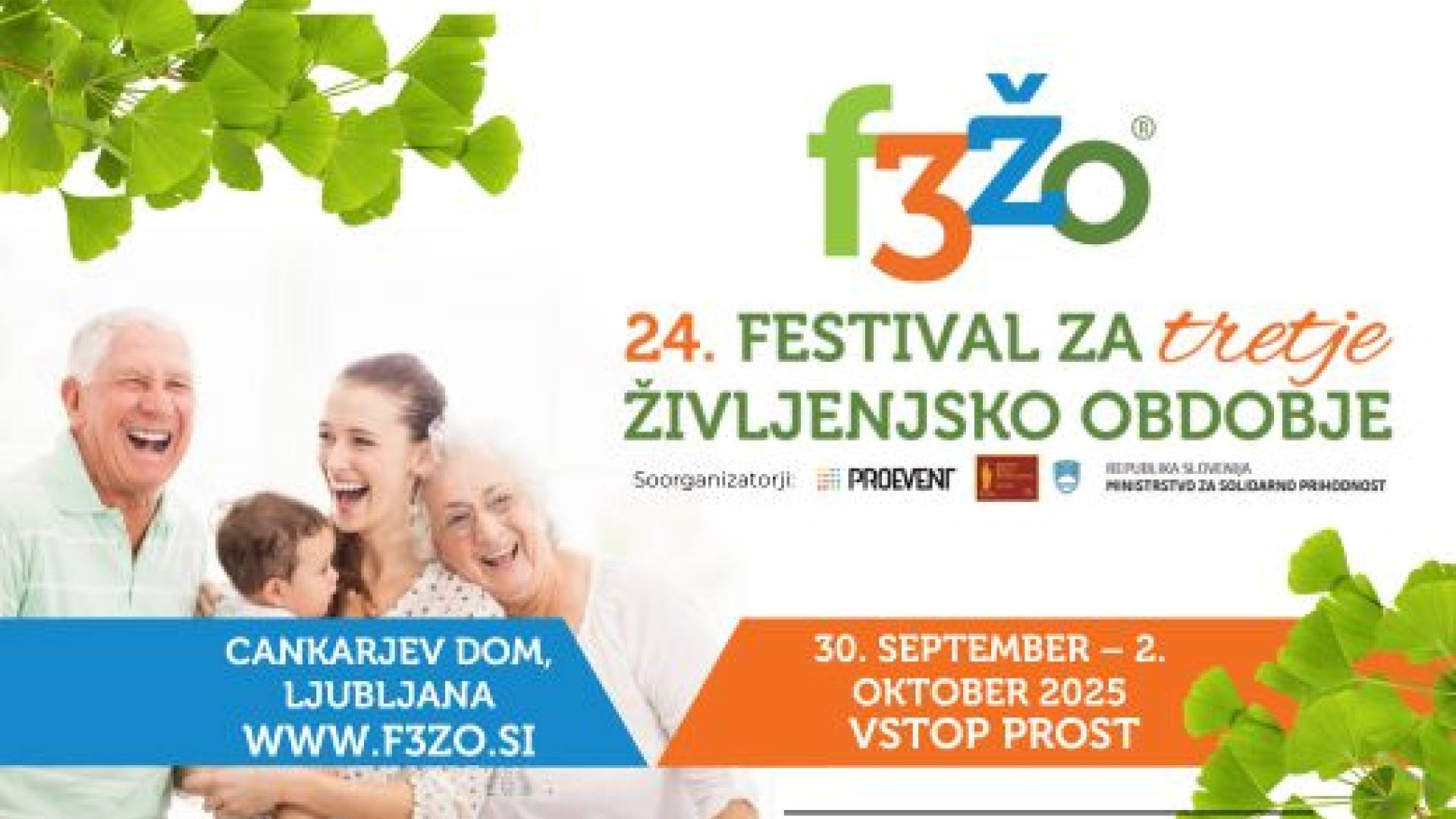 Cankarjev dom LjubljanaFestival za tretje življenjsko obdobje (F3ŽO) je največji dogodek za starejše v Sloveniji in eden vodilnih tovrstnih dogodkov v Evropi. V Cankarjevem domu v Ljubljani bo med 30. septembrom in 2. oktobrom 2025 festival že štiriindvajsetič povezal generacije ter poudaril pomen aktivnega staranja, vseživljenjskega učenja in medgeneracijskega sodelovanja. Festivalsko geslo »Vsi smo ena generacija« bo znova nagovarjalo vse obiskovalce k povezovanju in razumevanju med generacijami. Letošnji program obsega bogate strokovne razprave, izobraževalne vsebine, kulturne nastope na dveh odrih, pogovore z znanimi Slovenci ter obsežno sejemsko razstavo z več kot 150 razstavnimi prostori.
