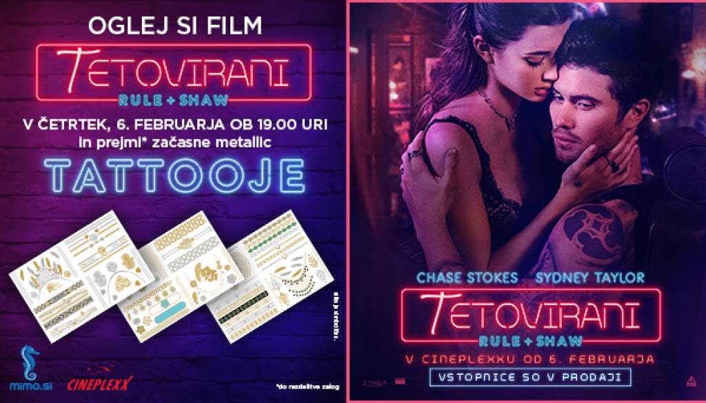 Cineplexx Ljubljana RudnikV četrtek, 6. februarja 2025 ob 19:00 si v Cineplexxu Ljubljana Rudnik oglej film TETOVIRANI in prejmi začasni metallic TATOO*!