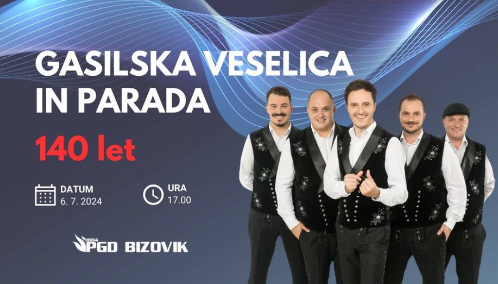 BizovikPGD Bizovik vabi na gasilsko veselico in parado ob 140-letnici društva, ki bo v soboto, 6.7.2024.