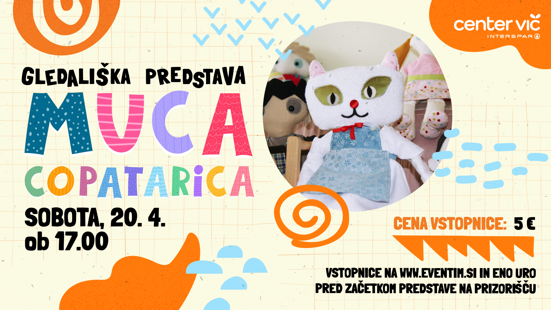 Center Vič - nov prireditveni prostorV novem prireditvenem prostoru Centra Vič se v soboto, 20. aprila, ob 17. uri obeta priljubljena lutkovna predstava Muca Copatarica, klasika slovenske otroške literature, ki že petdeset let navdušuje generacije. Muca Copatarica je več kot le zgodba o mački, ki pospravlja izgubljene copate. Gre za zgodbico, ki preprosto, a močno, nagovarja otroke ter jih uči o pomenu prijateljstva, sprejemanju različnosti in dobrote. Vabljeni, da se pridružite tej čarobni pustolovščini, ki nas bo popeljala v svet, kjer dobrota vedno zmaga. Vstopnice za otroke in odrasle spremljevalce so na voljo po enotni ceni 5 € in jih lahko enostavno kupite preko spletne strani www.eventim.si, ali pa si jih zagotovite eno uro pred začetkom predstave kar na prizorišču.