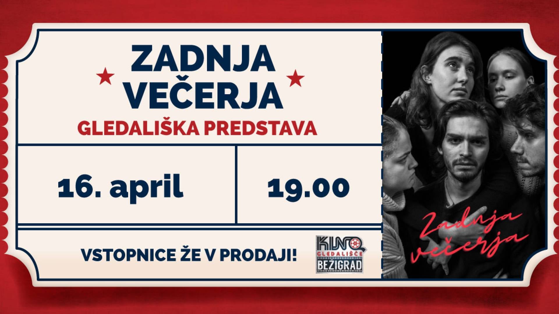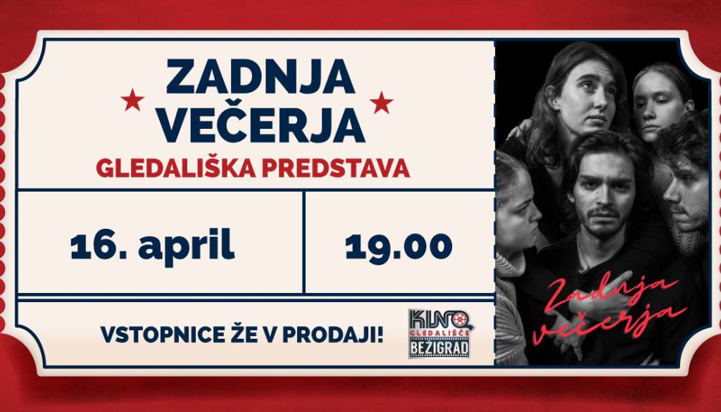 GLEDALIŠKA PREDSTAVA ZADNJA VEČERJA V KINU BEŽIGRAD 16. APRILA OB 19.00! 🎟️