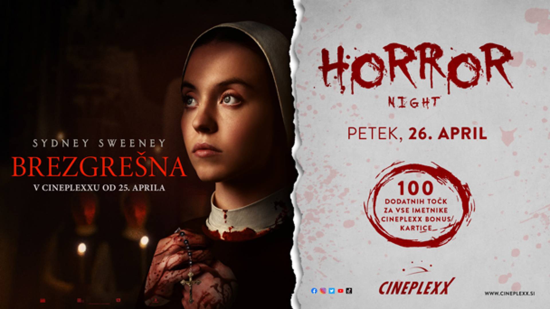 Cineplexx Ljubljana RudnikPridruži se nam na Horror nightu s filmom BREZGREŠNA, ki bo v petek, 26. aprila 2024! Imetnike naše CBC kartice bomo nagradili s 100 dodatnimi točkami!