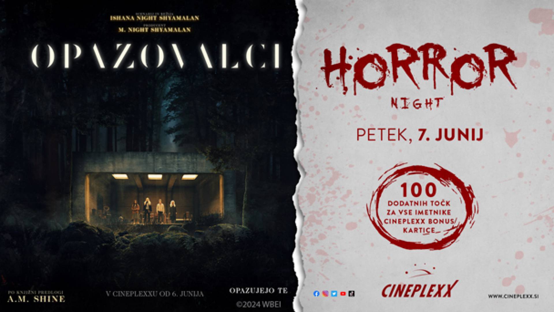 Cineplexx Ljubljana RudnikPridruži se nam na Horror nightu s filmom OPAZOVALCI, ki bo v petek, 7. junija 2024! Imetnike naše CBC kartice bomo nagradili s 100 dodatnimi točkami!