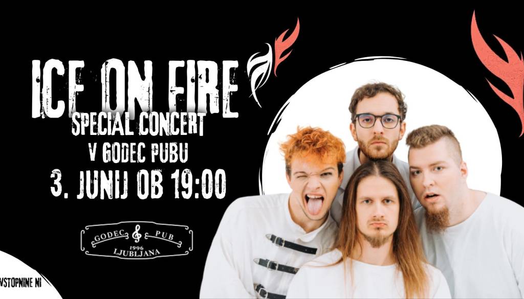 Vabljeni na koncert benda Ice on Fire v poletno intimnem ambientu Godec puba v Ljubljani! Vstopnine ni, hladna pijača je zagotovljena in seveda čisto odbit koncert.