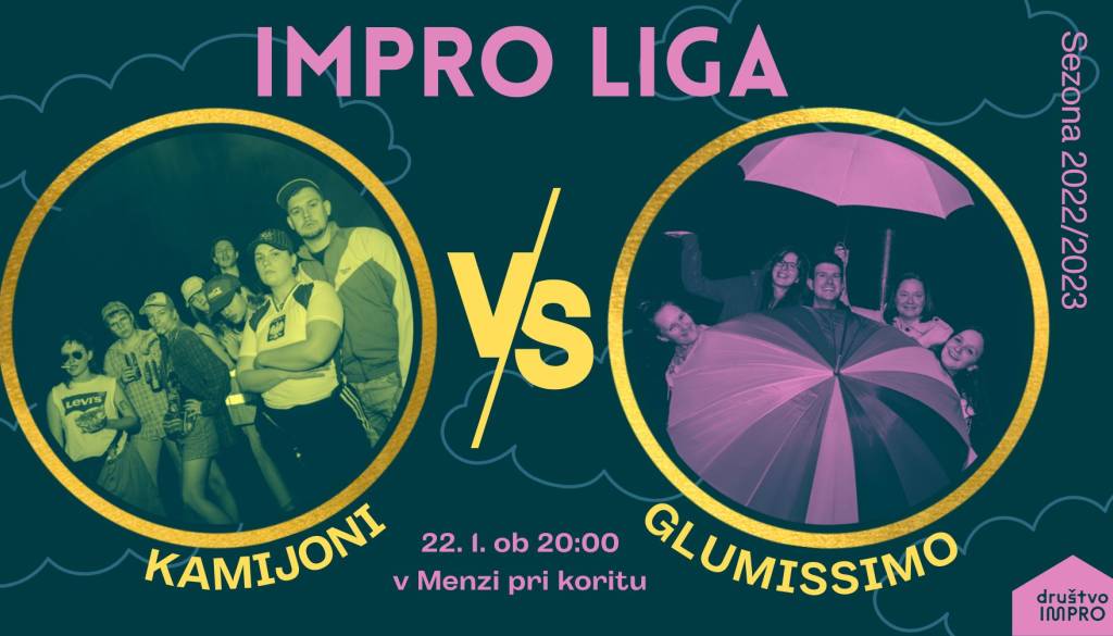 Improvizatorji se že ogrevajo za drugo borbo drugega kroga Impro liga tekem te sezone! Tokrat na eni strani odra ekipa Kamijoni, z trdnostjo železa in smoga, na drugi pa Glumissimo, ki se izglumijo iz še tako kočljive situacije.