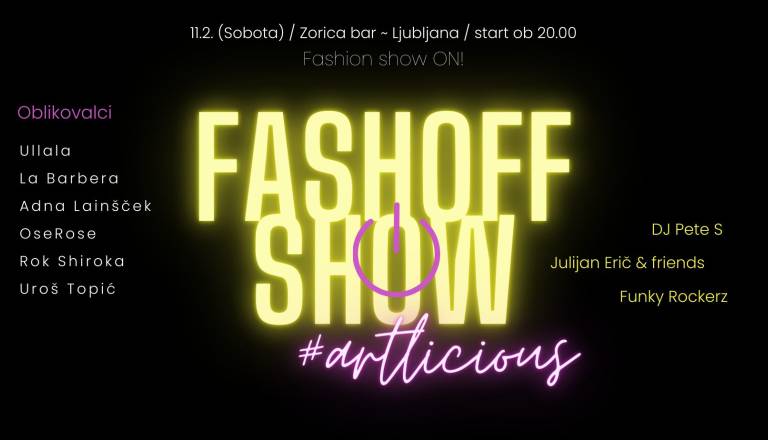FASHOFF SHOW ARTlicious je event, ki združuje oblikovalce ženskih in moških oblačil, ročno izdelanega nakita in modnih dodatkov, DJ-a, glasbeni band ki vas ...