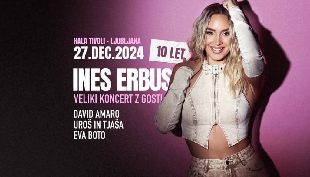 Z velikim navdušenjem napovedujemo poseben večer, ki bo zaznamoval 10 let ustvarjanja Ines Erbus. V zahvalo za podporo oboževalcev, ki jo spremljajo vsa ta leta, se je pevka odločila za svoj prvi veliki samostojni koncert v HALI TIVOLI.