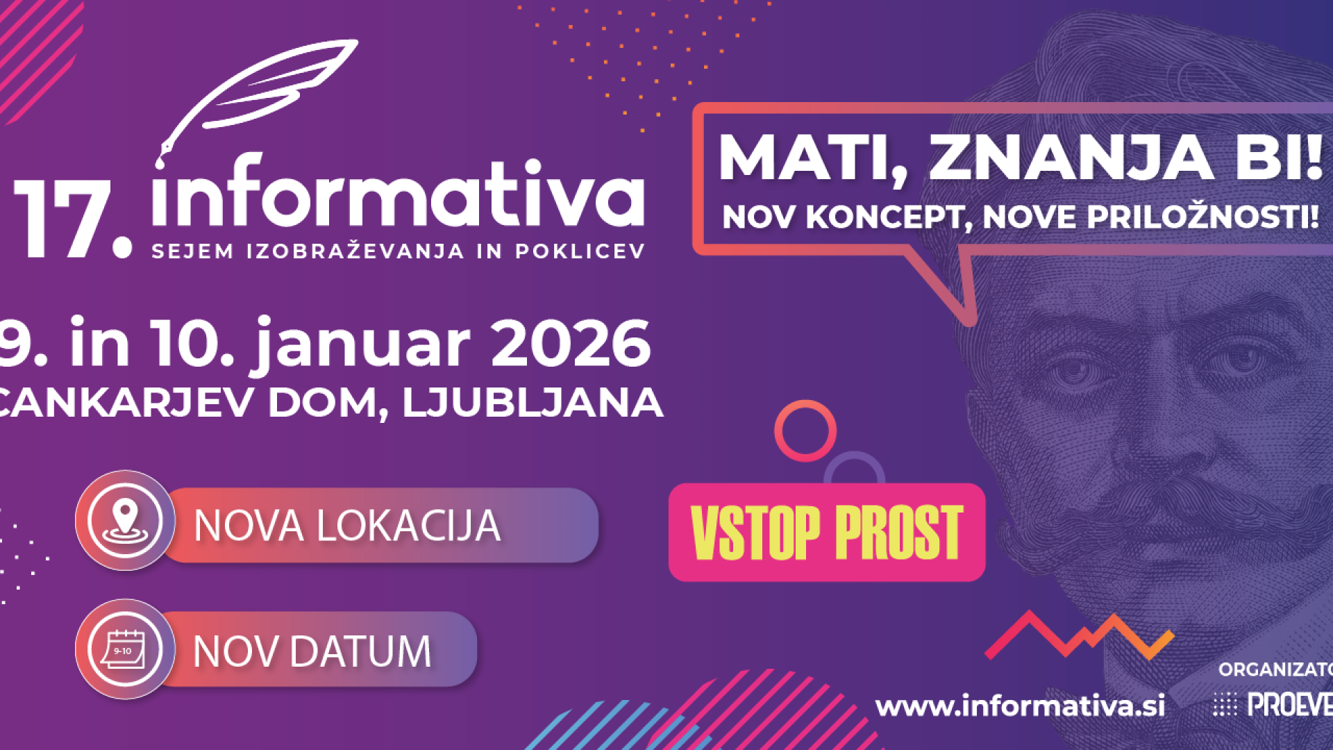 Na že 17. Informativi se bodo 9. in 10. januarja 2026, tik pred uradnimi informativnimi dnevi, predstavile srednje šole, šolski centri, fakultete in univerze, višje strokovne šole, delodajalci, ponudniki obštudijskih dejavnosti in izobraževanj, dijaški in študentski domovi, možnosti študija in dela v tujini in še in še ...