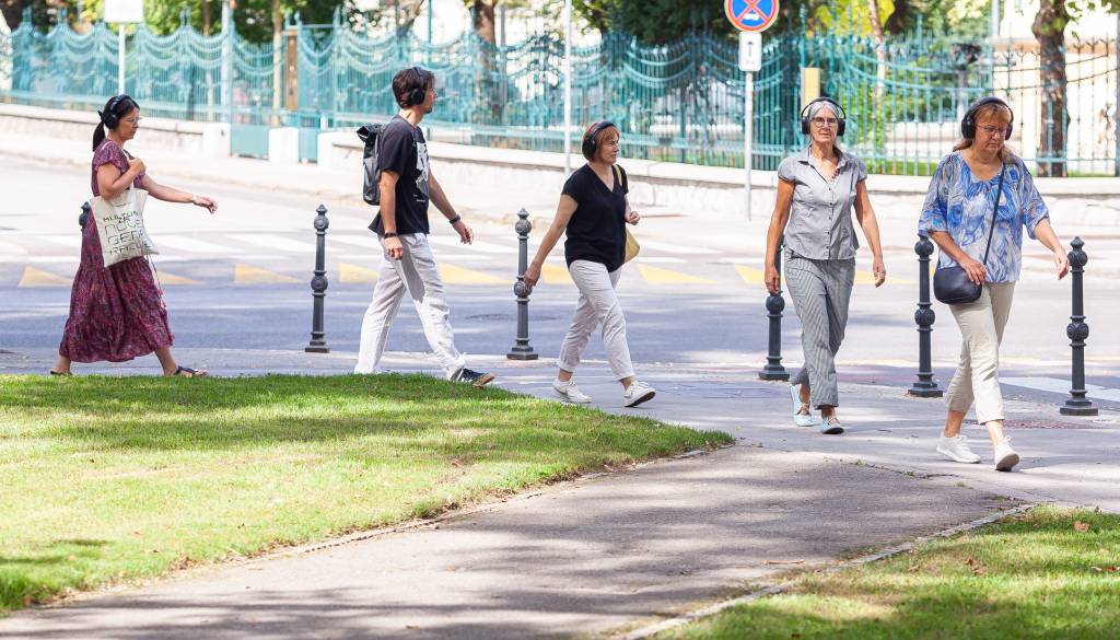 Avtorja sta v zvočno zgodbo vključila številne citate in misli arhitektov, pa tudi politikov in kulturnikov, povezanih z gradnjo Cankarjevega doma. Prepletata pa jo poezija in dramatika izbranih umetnikov. Subtilen in pomensko večplasten zvočni sprehod, ki v kontekstu sedanjosti orisuje obdobje gradnje in samo arhitekturo stavbe, lahko zavzeto občinstvo obogati z raziskovanjem zapisanih virov in tako dostopa do bolj poglobljenega znanja.