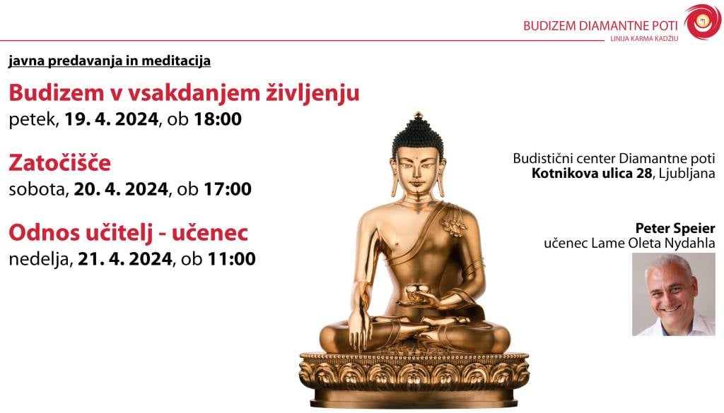 Budistični center Diamantne poti, Kotnikova ulica 28, LjubljanaPetek, 19. 4., ob 18:00: Budizem v vsakdanjem življenju