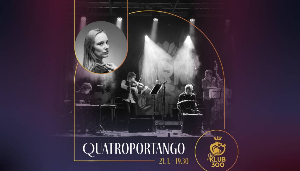 QuatroPorTango je tango nuevo kvartet iz Ljubljane, katerega sestavni del je pri nas zelo redko slišani bandoneon, ki skupaj z violino, klavirjem in kontrabasom omogoča edinstveno zvočno podobo. Za to priložnostno izvedbo se bo kvartetu pridružila tudi gostujoča pevka, izvrstna Aleksandra Čermelj, ki bo dodala še eno čutno dimenzijo. Čaka nas glasbeni večer poln čustev, prelepih melodij in harmonij, ter prepletov mirnih in divjih ritmov.