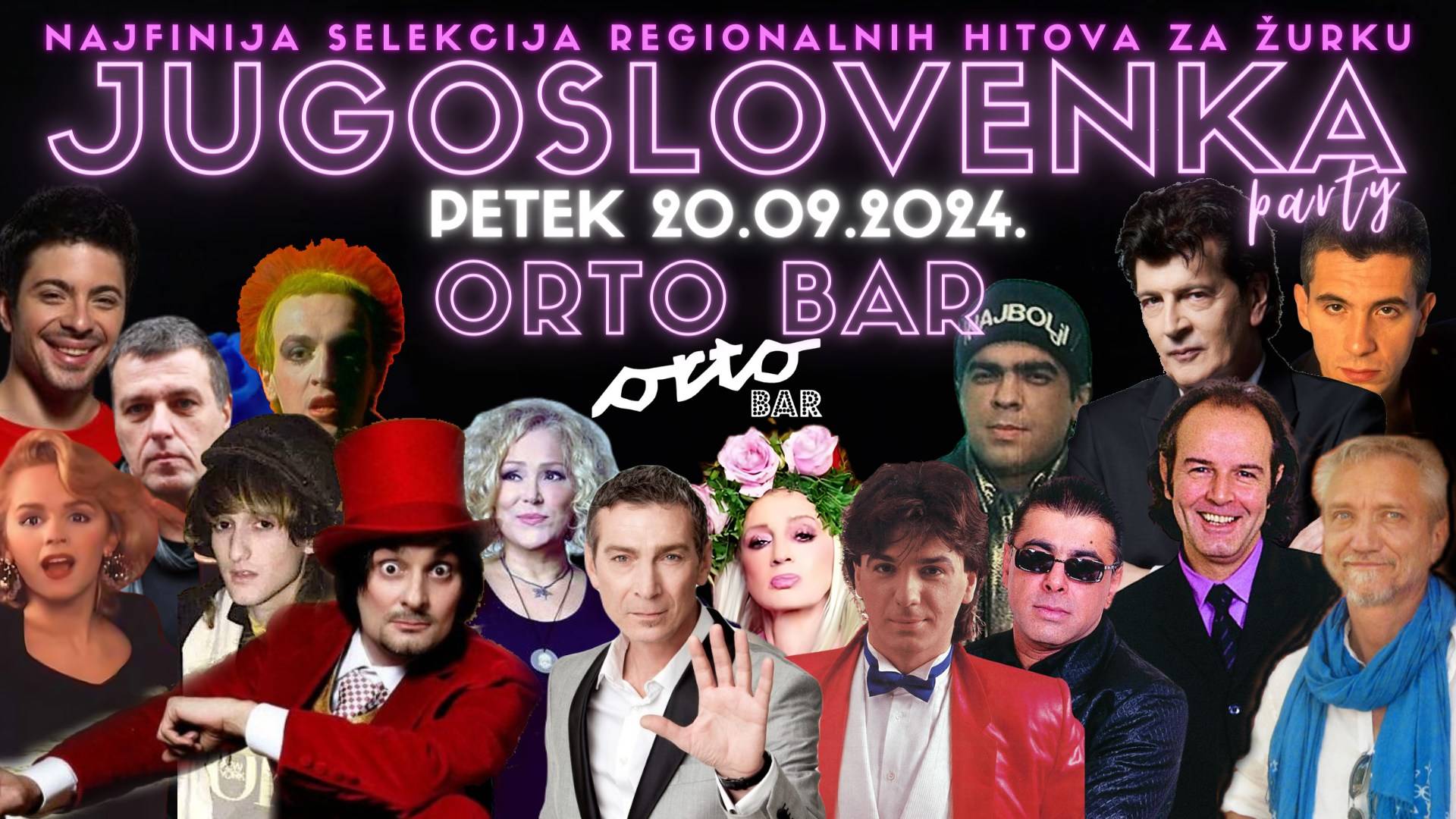 Orto barVeč kot pet let žurka JUGOSLOVENKA polni klube v Beogradu( Šlep, Štrafta in pop Quart) Od jeseni leta 2022 razprodaja klube tudi izven Beograda ( Novi Sad, Subotica, Banja Luka, Kraguljevac, Sarajevo, Užice, Pančevo, Kruševac,Niš ….) V prejšnjih letih se je odvilo preko 80 Jugoslovenk v Srbiji in BIH sedaj pa se bo odvijala tudi v vseh velikih mestih bivše Jugoslavije in po Evropi.