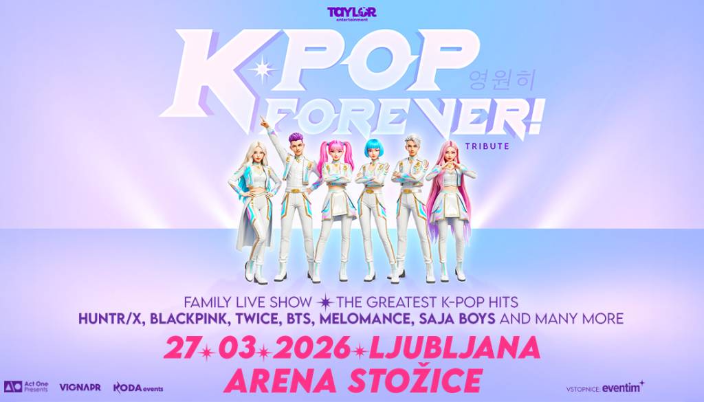Navdihnjen z Netflix fenomenom K-POP DEMON HUNTERS, najbolj gledanim filmom vseh časov, prihaja v Ljubljano K-POP FOREVER! – mega-show, ki osvaja največje svetovne arene in slavi globalno K-POP revolucijo!