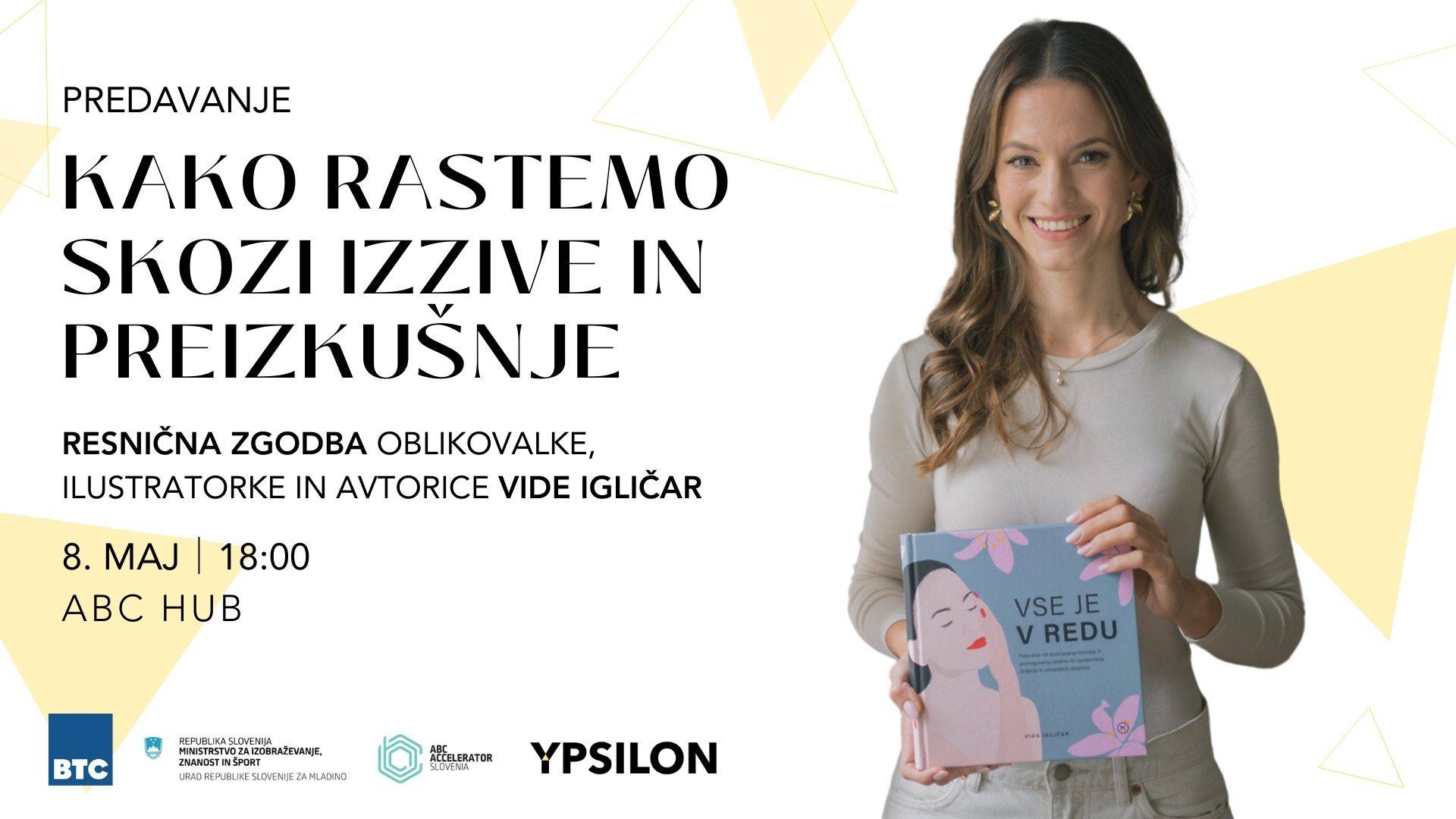 Kako rastemo skozi izzive in preizkušnje, ni samo predavanje, ampak tudi izkušnja, ki jo bo delila Vida Igličar, znana umetniška direktorica in ilustratorka ter avtorica knjižnjih uspešnic Vse je v redu in 100 dni za boljšo mene.