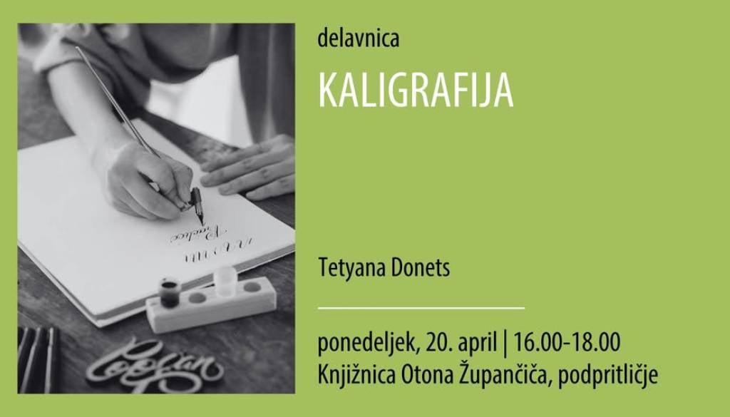 Knjižnica Otona ŽupančičaKaligrafija pokriva tri ključna področja življenja, ki se jim velja posvečati: odnos do lepote, izražanje skozi umetnost in strast do življenja. Na delavnici boste spoznali osnove kaligrafije.
