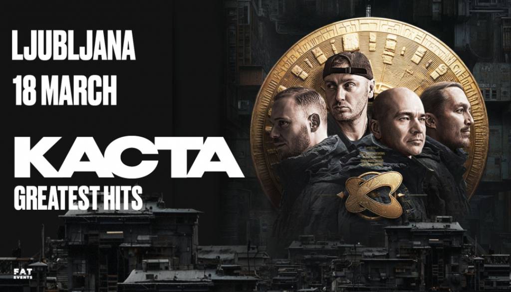 Kino Šiška dvorana KatedralaIkonična hip-hop zasedba Kasta, legende ruskega rapa iz Rostova na Donu, prvič prihaja v Slovenijo. Skupina, ki je danes prepovedana v Putinovi Rusiji, je dobro poznana poslušalcem po vseh postsovjetskih državah.