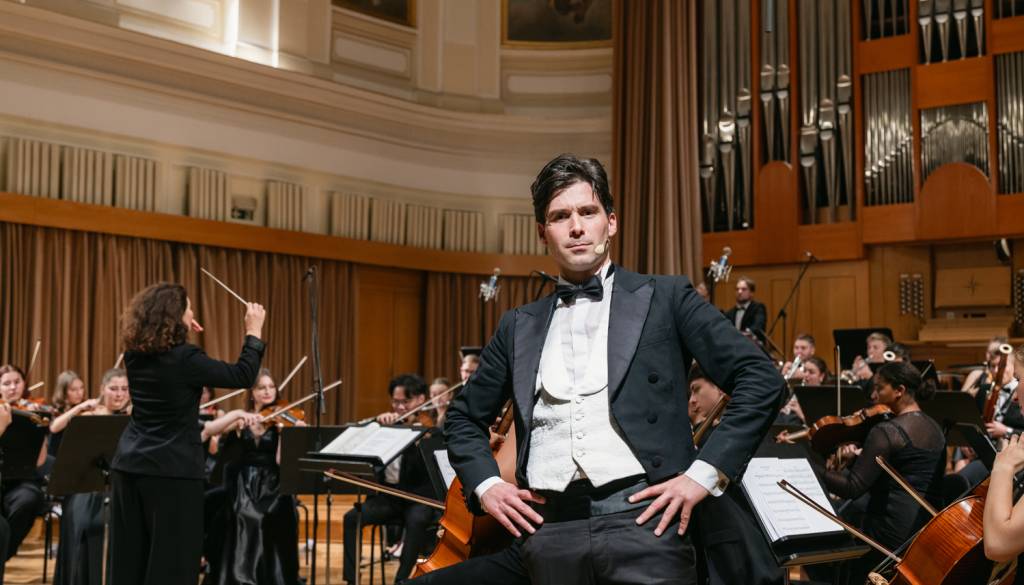 Tilen Artač, mojster imitacije, predvsem pa akademsko izobražen glasbenik, bo skupaj s Slovenskim mladinskim orkestrom, violončelom in dirigentsko palico občinstvo povabil na komično popotovanje skozi zimzeleni repertoar večnih klasikov Johanna Straussa, Wolfganga Amadeusa Mozarta, Ludwiga van Beethovna, Gioachina Rossinija in drugih.