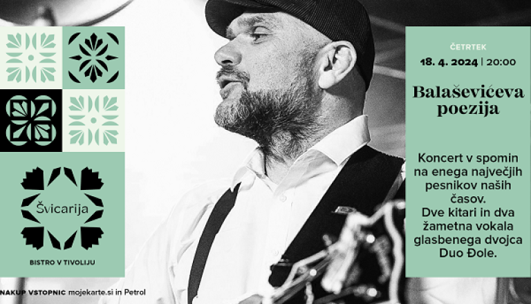Koncert bo izveden v notranjih prostorih bistroja Švicarija. Brezplačno parkiranje na parkirišču Tivoli. Število vstopnic je omejeno. Sedišča brez sedežnega reda.