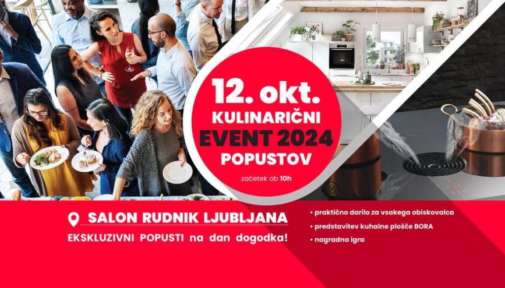 🍽 Posebna predstavitev BORA kuhalnih plošč ob 10:00 – Spoznajte napredne tehnologije BORA in okusite vrhunske jedi, ki jih bomo pripravili med demonstracijo.