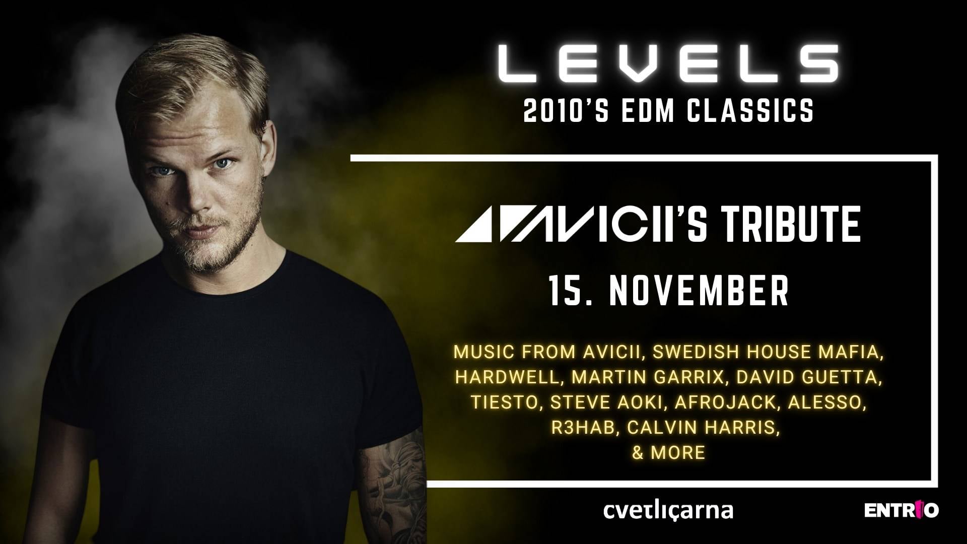 Njegovi hiti "Levels", "Hey Brother", "Wake me up", "The Nights" in številni drugi še danes kraljujejo na klubskih in festivalskih plesiščih po vsem svetu, 15. novembra pa tudi na posebnem festivalskem Avicii's Tribute v Cvetličarni!