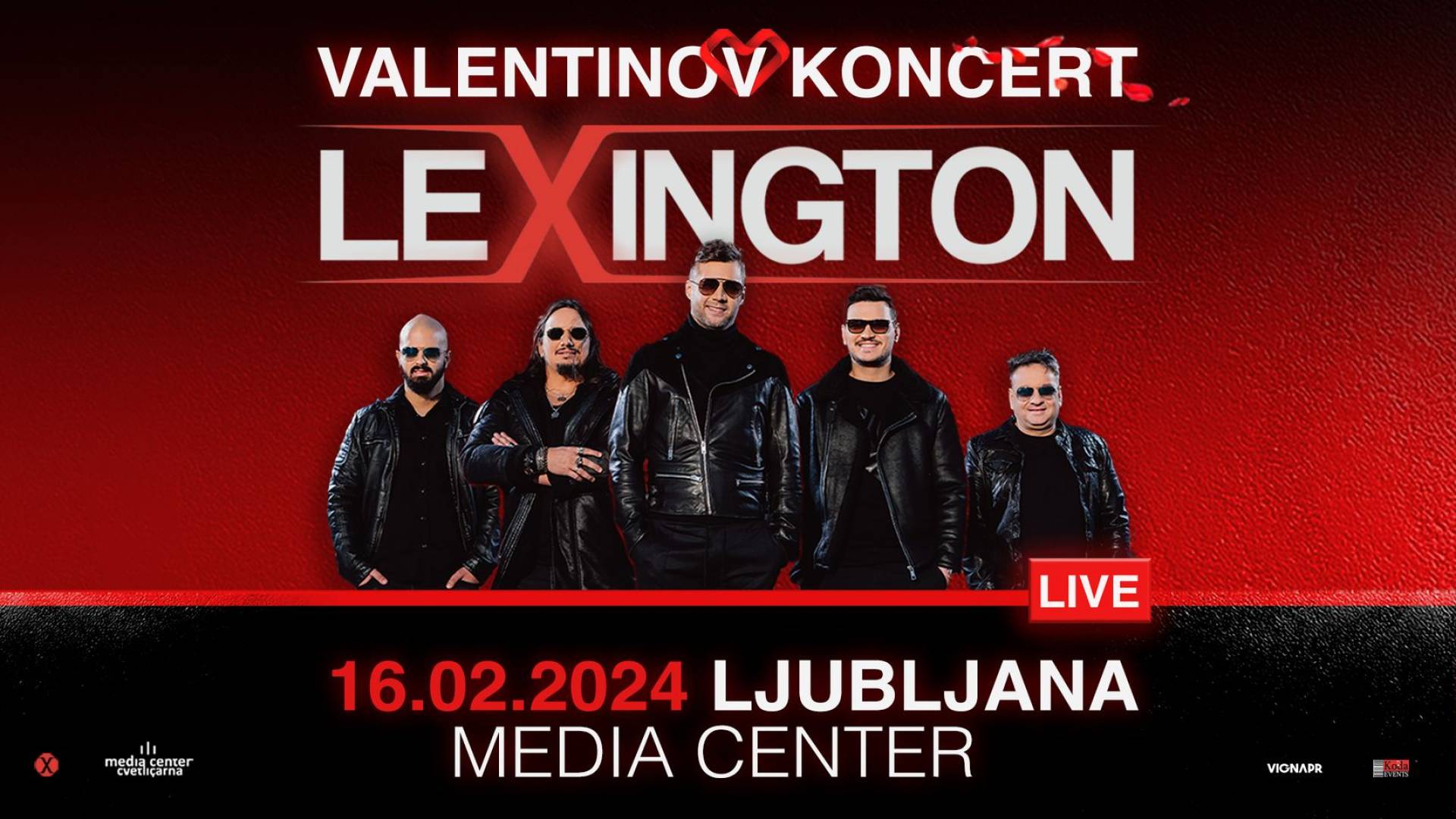 Media Center LjubljanaNapovedujemo! Lexington Band live! VALENTINOV KONCERT v Ljubljani! 🗓️ petek 16.2.2024 📍 Media Center Ljubljana 🔖 Začetek prodaje vstopnic v četrtek, 23.11. ob 10.00 online ter na prodajnih mestih Eventim SI!